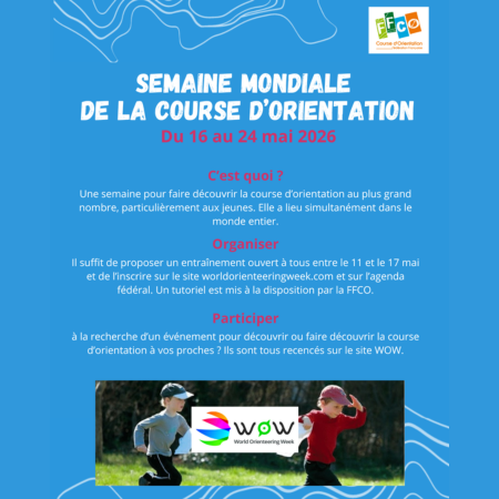 La semaine mondiale de la course d'orientation (ou World Orienteering week) aura cette année lieu entre le 16 et le 24 mai. Elle représente une opportunité de communiquer sur notre activité auprès des jeunes. C'est pourquoi, nous souhaitons vpis encourager à proposer des événements.
